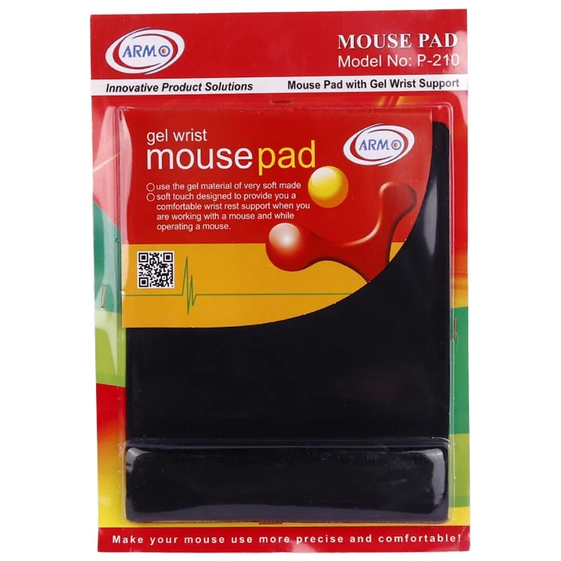 ماوس پد طبی آرمو مدل A-210,مقاوم در برابر لغزش با دارا بودن استراحتگاه مچ دست,موفق به کسب استاندارد سلامت و ایمنی محصول شامل FCC / CE,طراحی طبی مطابق با ارگونومی دست کاربر جهت جلوگیری از وارد شدن فشار، ساخته شده از جنس پارچه با روکش چرم مصنوعی دور دوزی شده میباشد.